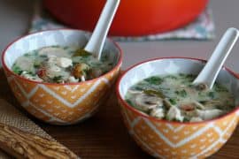 Coloque a sopa nas tigelas, sirva com um colher de iogurte grego e decore com umas folhinhas de dill.