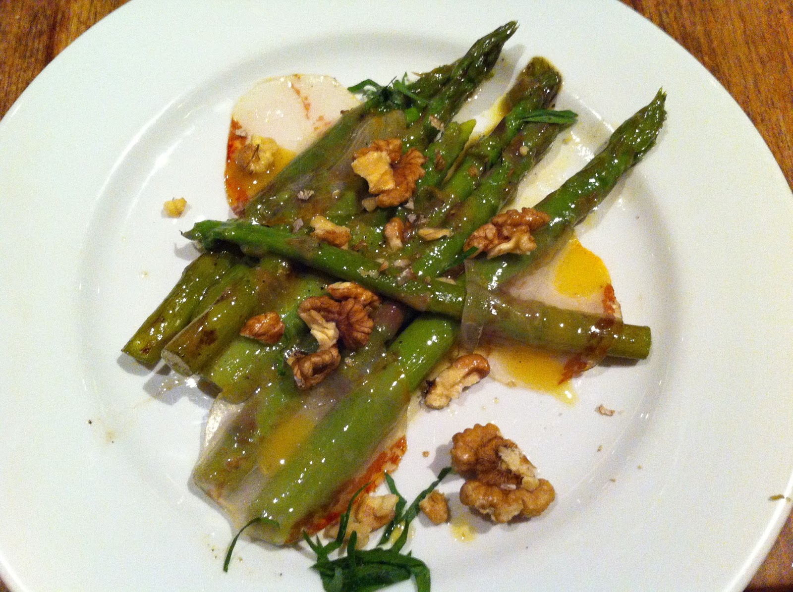 De entrada pedi aspargos à vinagrete com pancetta e nozes pecan. Os aspargos estavam um pouco cozido demais mas com muito sabor, não sabia que assim como na França, os ingleses adoram aspargos e tem muito orgulho das suas produções locais.