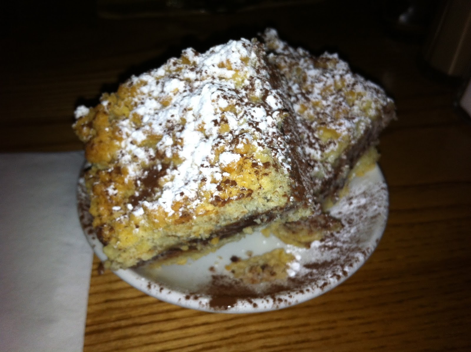 Ainda tivemos espaço para um bolo de ricota recheado com chocolate bem típico italiano: massa úmida, não muito doce e porção generosa.