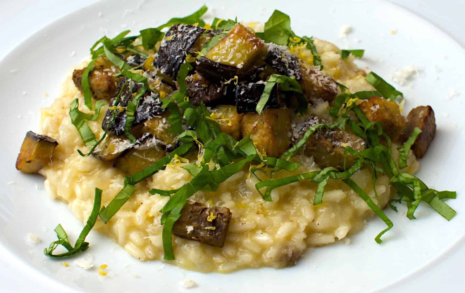 Risoto Vegetariano de Beringela, Limão e Manjericão